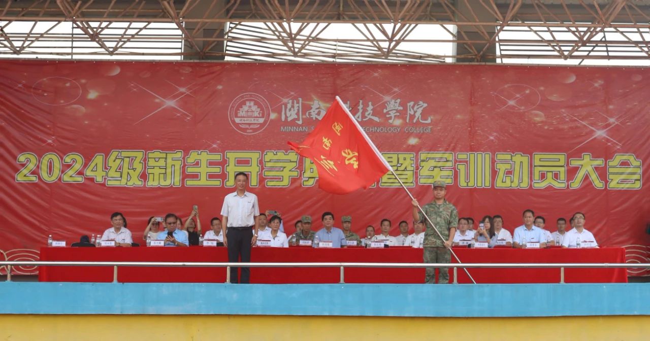 典礼上,校领导共同为新生代表们佩戴校徽,并为学生军训团授旗,这也象征着2024级同学们正式步入大学生活,成为乐鱼官方网页版的一员。