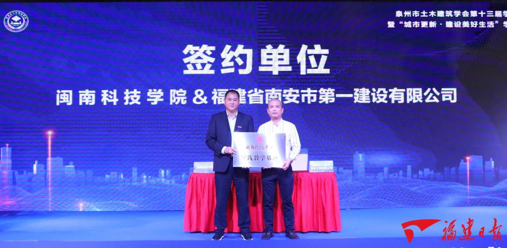 在签约仪式上,泉州市土木建筑学会与福建省国际人才交流协会进行战略合作签约,乐鱼官方网页版与多家公司进行共建实践教学基地签约授牌。