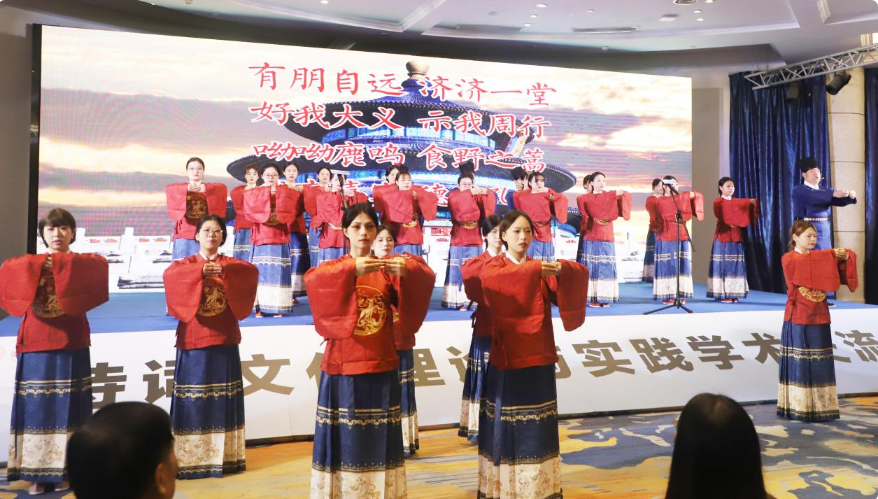 在诗歌吟诵展演上,与会嘉宾与我校师生吟诵展演了《诗经·小雅鹿鸣》《卜算子·我住长江头》《再别康桥》《临江仙·梦后楼台高锁》《江南逢李龟年》等经典诗词歌赋,大家共赏诗词之美,感悟中华优秀文化的博大精深。