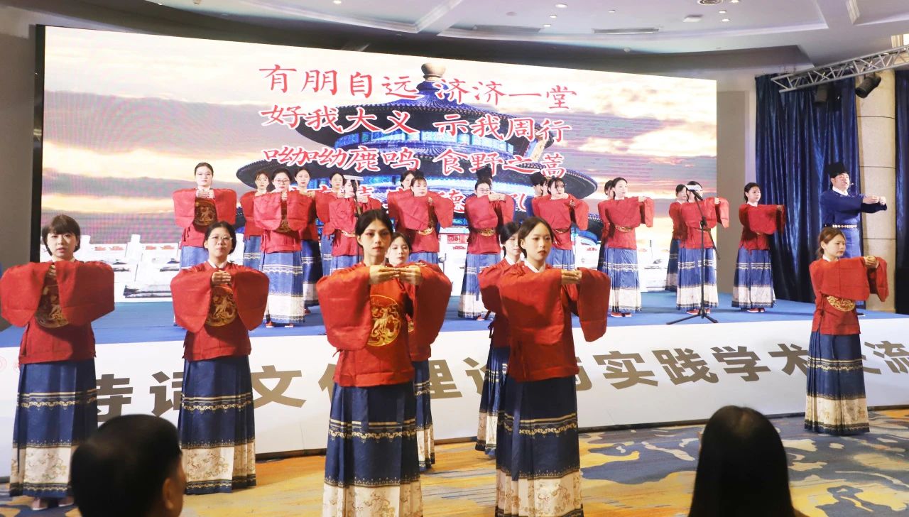 在诗歌吟诵展演上,与会嘉宾与我校师生吟诵展演了《诗经·小雅鹿鸣》《卜算子·我住长江头》《再别康桥》《临江仙·梦后楼台高锁》《江南逢李龟年》等经典诗词歌赋,大家共赏诗词之美,感悟中华优秀文化的博大精深。