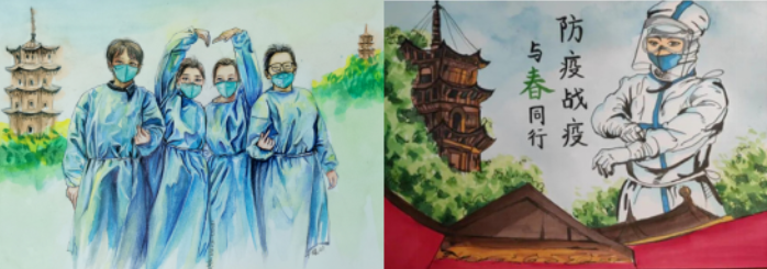 师生创作艺术作品,以艺战“疫”