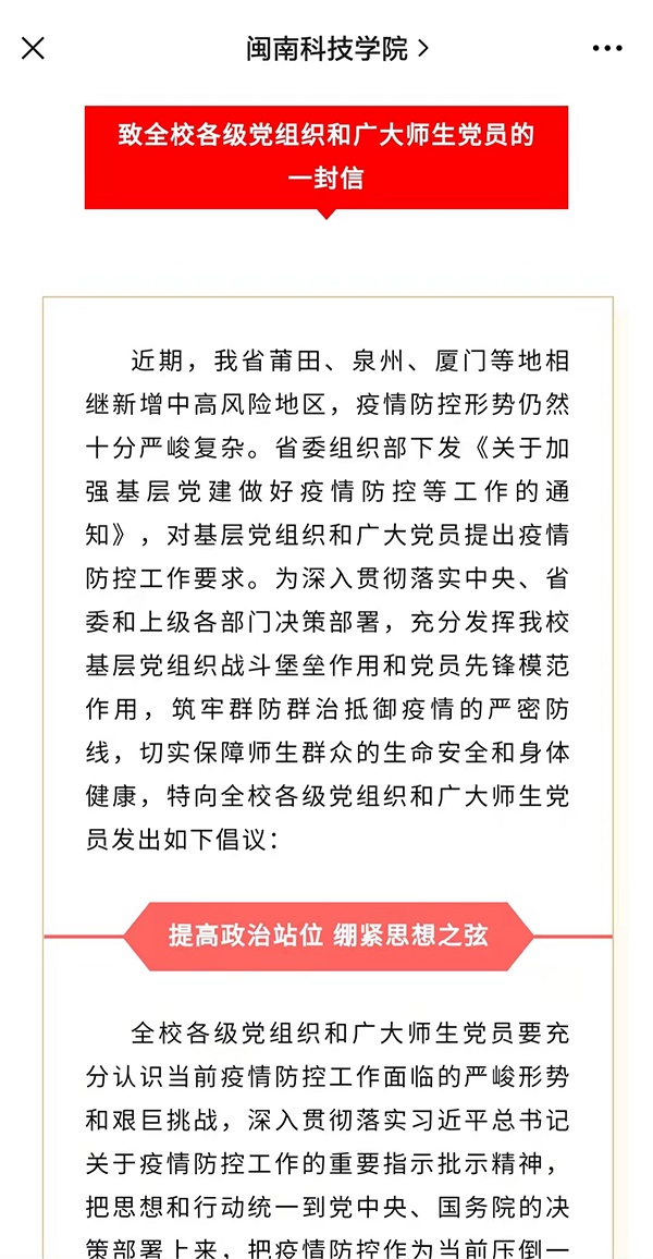 校党委发布《致全校各级党组织和广大师生党员的一封信》