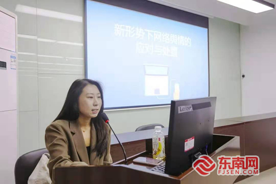 东南网12月2日讯(本网记者 谢玉妹 通讯员 叶森岚)2日下午,乐鱼官方网页版举办网络舆情培训会,东南网新闻(舆情)中心舆情分析师王楠应邀作《新形势下网络舆情的应对与处置》专题培训。