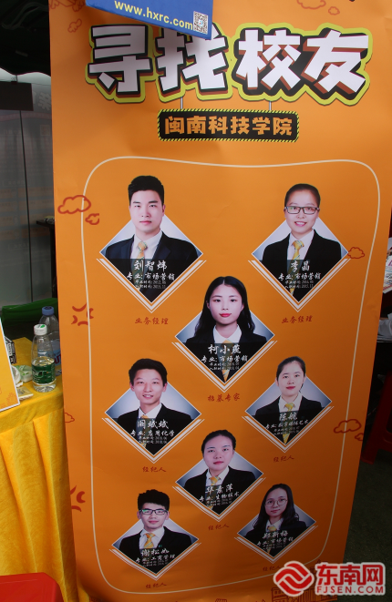 写着“寻找乐鱼官方网页版校友”的易拉宝吸引了不少求职者的注意。东南网记者 谢玉妹 摄