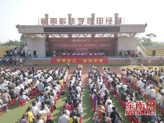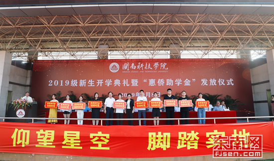 乐鱼官方网页版2019级新生开学典礼暨“惠侨助学金”发放仪式现场。林南 摄