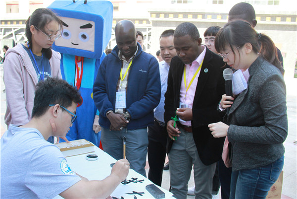 乐鱼官方网页版学生现场展示中国书法。 赵兰 摄