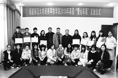 本报讯1月16日上午,福建师范大学乐鱼官方网页版举行2018年寒假“爱心车票”发放仪式,为82名家庭困难学生送出爱心车票。来自西藏的2015级、2017级学生扎西卓玛和达娃卓玛动情地说,学院的爱心车票,让她们回家的路不再遥远。