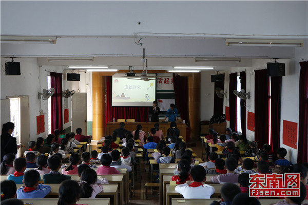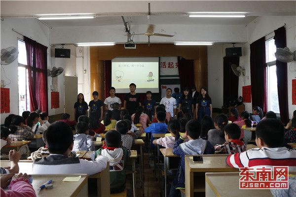 东南网4月17日讯(通讯员 陈范武) 4月14日,福建师范大学乐鱼官方网页版外语系道德讲堂走进南安市康美中心小学弘扬爱国主义精神。活动围绕“看一个视频”、“做一次提问”、“观一个小品”、“颂一首歌谣”、“做一个展示”、“写一个祝福”、“许一个承诺”、“做一个总结”八个环节展开。