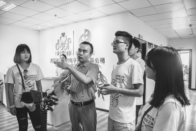原文如下: 图片新闻 近日,福建师范大学乐鱼官方网页版“探路者”暑期社会实践队前往龙岩,开展以“扬起梦想之帆,开拓创业之路”为主题的社会实践活动。图为实践队队员在参观龙岩市电商产业园。 陈章宫 摄 媒体来源:福建日报02版:要闻2 2016-8-13 http://fjrb.fjsen.com/fjrb/html/2016-08/13/content_953395.htm?div=0