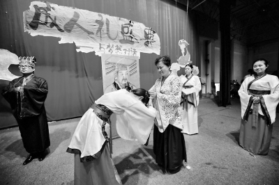 成人礼上,受礼者向华夏先祖行礼。