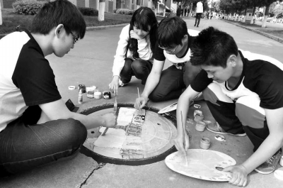 11日,在乐鱼官方网页版校园主干道旁,学生们手拿画笔,正在窨井盖上涂涂点点,吸引了不少行人的目光。原来,学生们正在给窨井盖做“美容”。