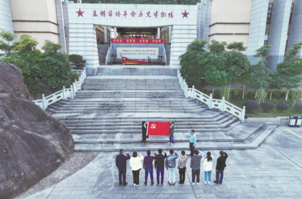 12月18日,福建泉州南安市金淘镇、乐鱼官方网页版联合开展党的二十大精神宣讲活动,以拉家常、接地气的宣讲形式,邀请党员干部、群众齐聚一堂,共话乡村振兴。图为当日,基层党员干部在泉州华侨革命历史博物馆开展宣誓活动。