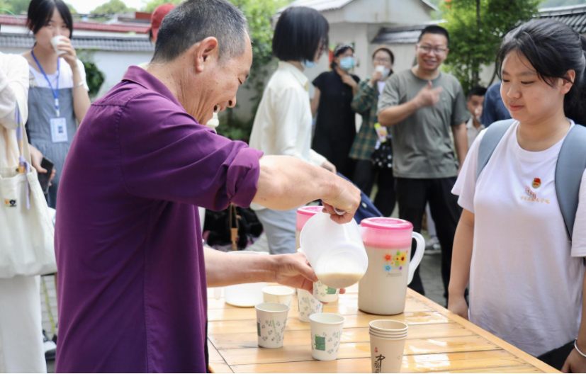 学生品尝擂茶