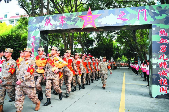 本报讯(记者王丽清李想文/图)从戎报国英雄志,建功立业正当时。17日下午,南安市举行2024年上半年新兵入伍欢送大会,171名新兵身着军装、肩披绶带、胸佩红花,精神抖擞、意气风发,带着家乡父老的嘱托和殷殷期盼,即将奔赴军营,在保卫祖国的神圣岗位上奉献热血青春。