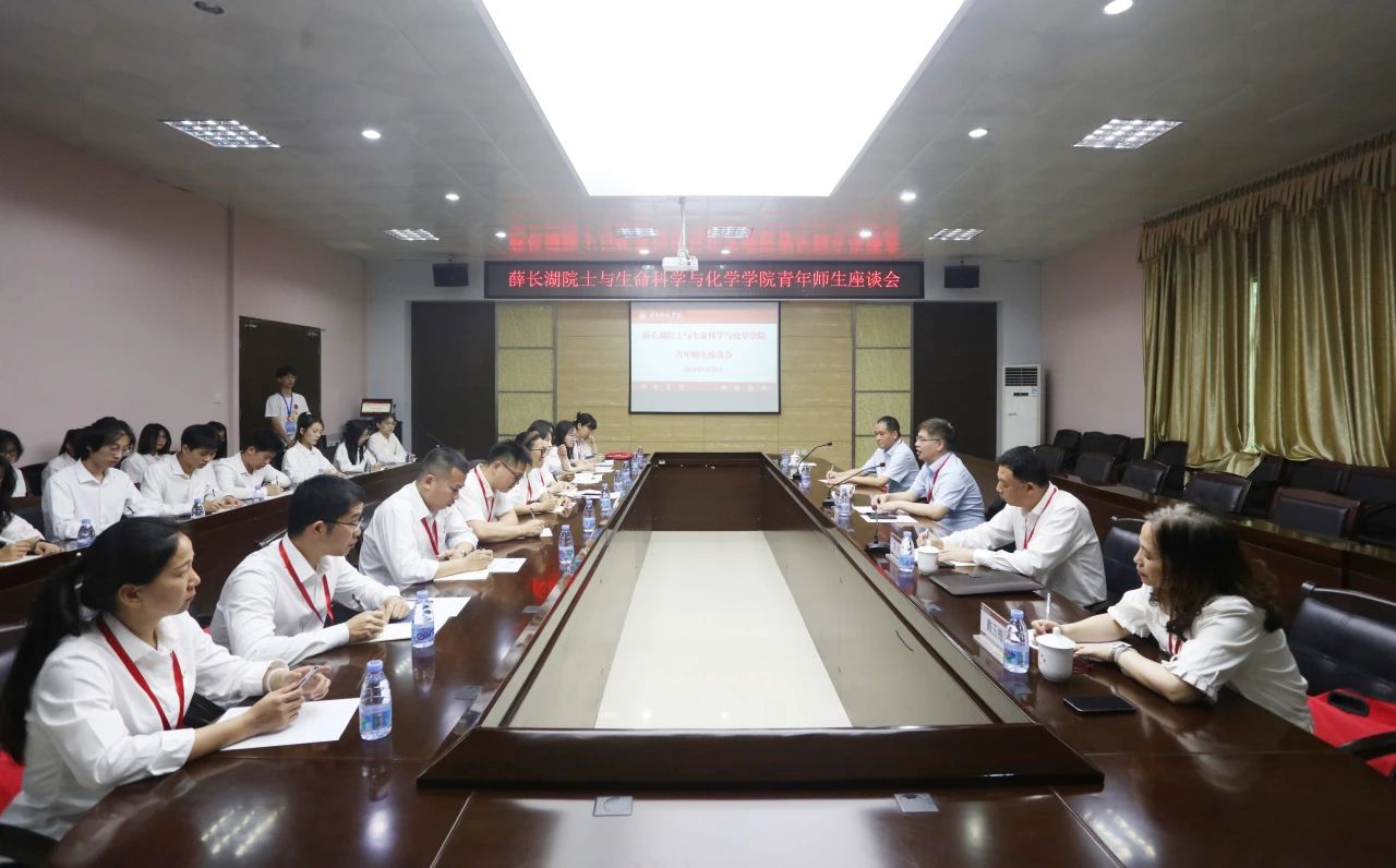 5月25日上午,中国工程院院士、中国海洋大学薛长湖教授与我校生命科学与化学学院青年师生代表亲切座谈交流。校党委书记李旭、常务副校长周勇军参加座谈会。