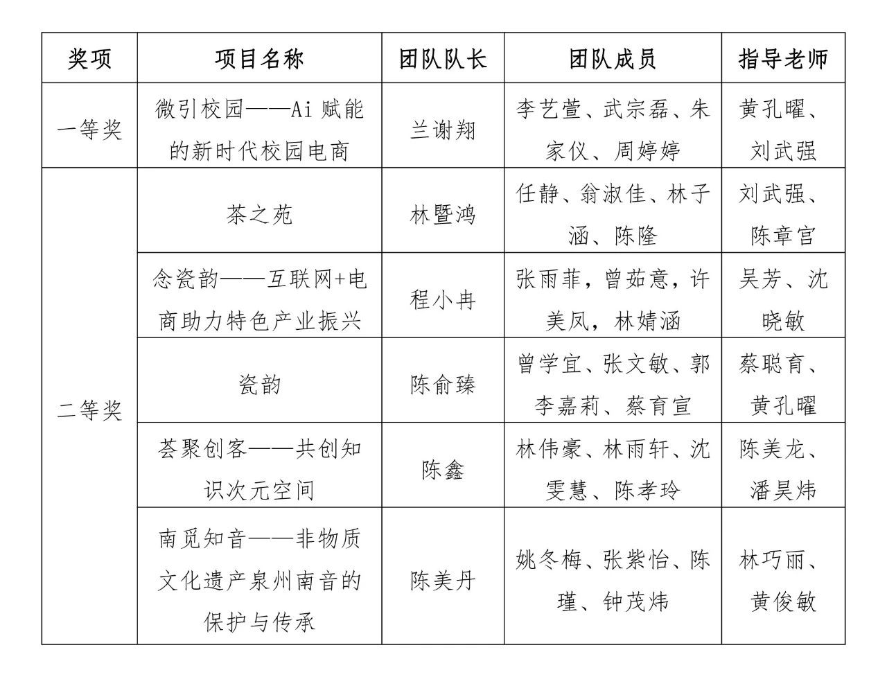 5月26日,第十四届全国大学生电子商务“创新、创意及创业”挑战赛福建赛区选拔赛公布获奖名单。我校商学院、创新创业学院选派的6支参赛团队获常规赛道一等奖1项、二等奖5项的好成绩。刘武强、黄孔曜老师荣获最佳指导老师。