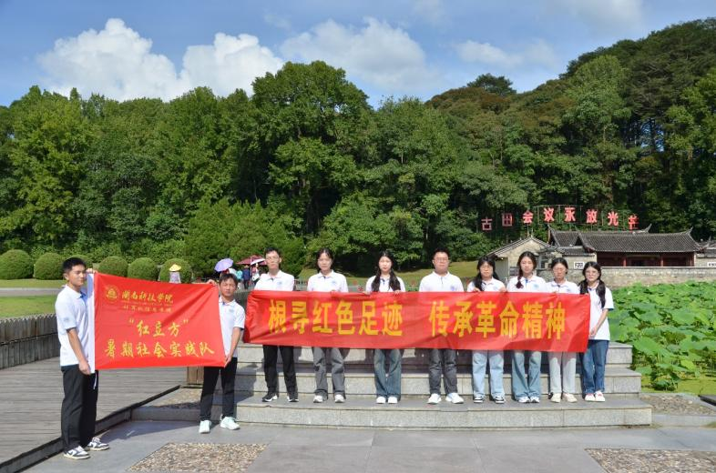 实践队沿着151级台阶拾步而上,来到位于会址东北侧的毛主席纪念园,瞻仰毛主席雕像,品读基座上篆刻的诗词,深切缅怀毛主席等老一辈无产阶级革命家的丰功伟绩和精神风范。随后,在松毛岭战役烈士纪念园,实践队认真聆听学习无名战士们不怕牺牲、血撒热土的英雄事迹,向烈士纪念碑默哀鞠躬,共同缅怀革命先烈。