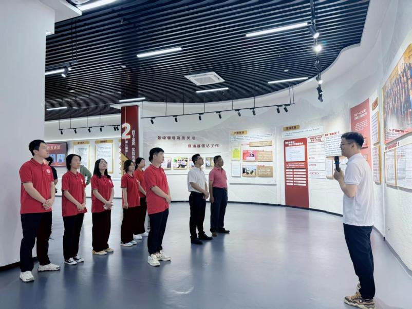 “作为‘四下基层’发源地的霞浦县,是习近平总书记关于加强和改进人民信访工作的重要思想的萌发地、孕育地和实践地……”在共青团霞浦县委书记谢良焰的陪同下,实践队走进“把心贴近人民·四下基层发源地”主题展开展沉浸式、体验式学习,通过一张张珍贵的照片、一件件历史物件,追溯习近平总书记在霞浦的足迹往事,感悟其中的领袖思想伟力。随后,在“时代楷模”孙丽美同志先进事迹展示馆内,孙丽美同志十七年如一日扎根农村,为脱贫攻坚、乡村振兴默默付出的先进事迹,深深打动了在场的每一位实践队成员,更加坚定了大家以青春之力勇担时代重任的信念与决心。