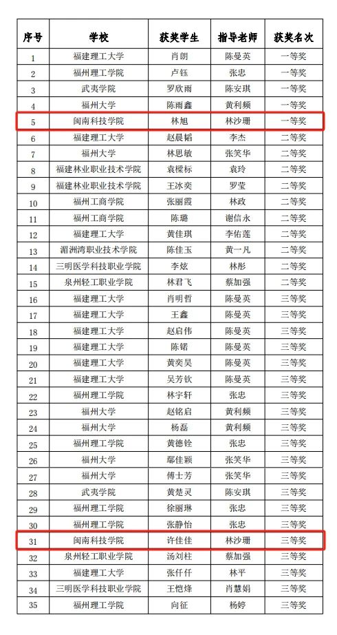第一届福建省建设工程数字化计量与计价课程设计创新大赛获奖名单