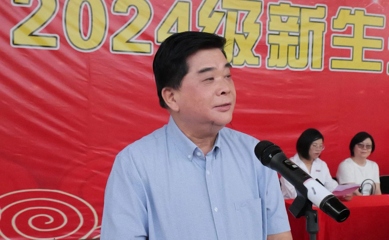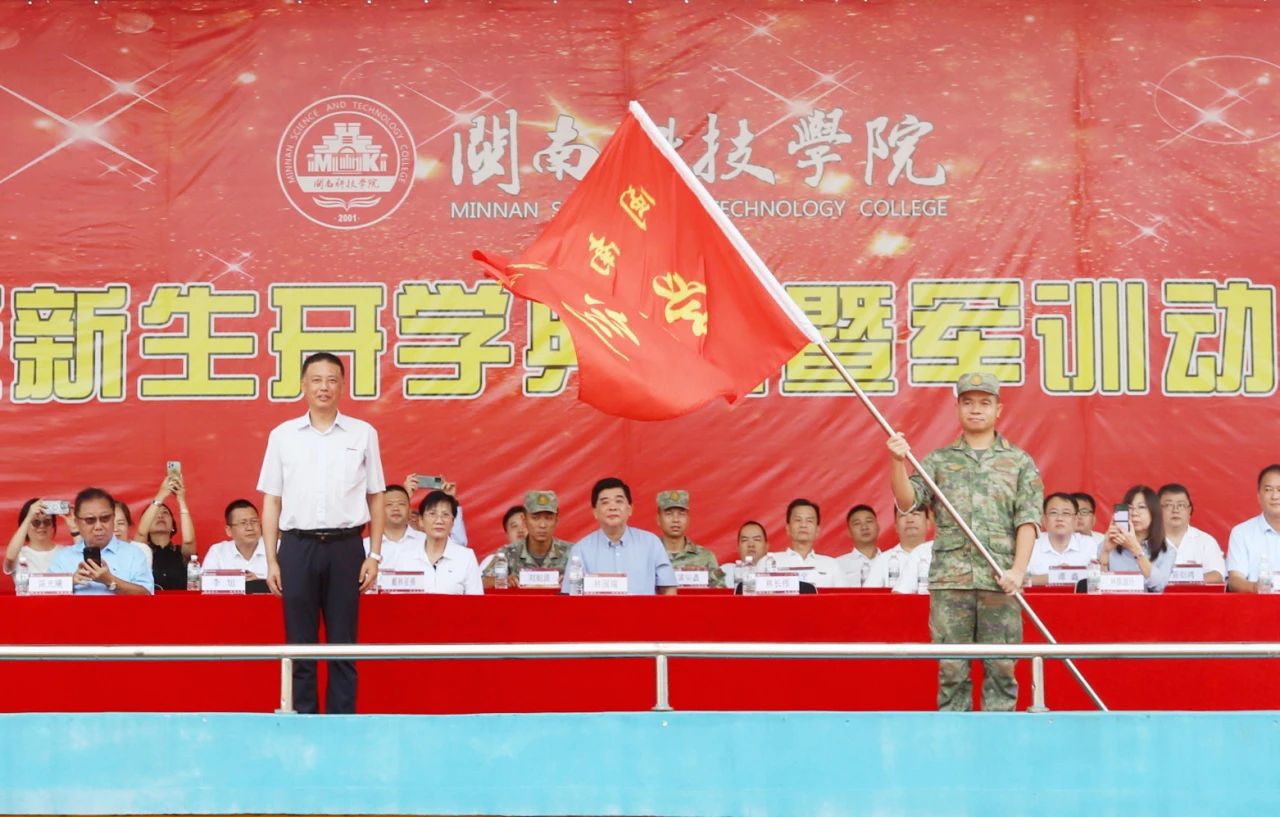 董事长林国端代表学校董事会向新生表示热烈的欢迎和衷心的祝贺,向辛勤培育同学们的父母和老师致以诚挚的感谢,向负责承训工作的各位教官表示崇高的敬意。他希望同学们珍惜闽科良好学习环境,打好知识基础,培育优良品德,锻炼强健的体魄,做到全面发展,在攀登知识高峰中追求卓越,在肩负时代重任时行胜于言,在真刀真枪的实干中成就一番事业。他强调,董事会将一如既往全力支持和保障学校的各方面发展建设,继续完善大学的顶层设计、管理模式以及行政改革;全校上下要以迎评达标为目标,全力推进新学年各项工作,凝心聚力,锐意进取,以奋发有为的精神面貌、改革创新的实干担当,实现学校事业高质量发展。