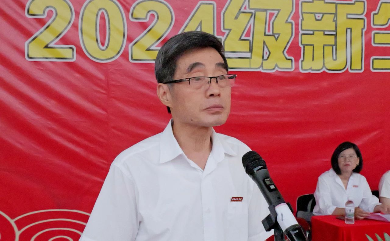校长游小波在致辞中向全体新同学提出殷切希望:一是挖掘兴趣、认识自我,明确心中热爱。希望同学们要深入了解自己所在的学科领域,形成清晰的自我认知,在专业学习、社团活动和实践锻炼中,明确心中热爱,找准努力方向,持之以恒地探索;在接下来的求学路上,做学习的主人、做自己的主人,去规划未来,激发探索人生无限可能的强大动力。二是随事而制、拥抱变化,练就强大内心。希望同学们能够主动拥抱变化、磨炼坚韧意志、练就强大内心,铭记“明者因时而变,知者随事而制”的道理,练就强大的逆商,不断提升自己洞察变化、及时调整的能力,不管遇到什么样的挫折都能稳定情绪,以“不变”的执着在“万变”中发现新机遇、找到新路径,保持探索人生无限可能的非凡定力。三是励精图进、学有所思,夯实过硬本领。希望同学们浸润在学有所长的蓬勃朝气里,置身在文理交融、丰富多彩的对外交流和实践活动中,你们要广泛涉猎、触类旁通,积蓄迈向无限的饱满能量,学会认识世界、解决问题的方法;要将学校的学习资源转化为成长成才的巨大优势,既勤学又博学,以习得“万卷书”的功底,在探索“万里路”上行稳致远,锤炼探索人生无限可能的过硬实力。四是树立理想、涵养情怀,延展人生边界。希望同学们要不负韶华、不负时代,不断增强历史责任感和使命感,奋力书写为中国式现代化挺膺担当的青春篇章;要学习时代榜样,坚定理想信念,树立远大目标,做好“小我”,融入“大我”,奉献“无我”,用实际行动诠释“复兴民族,誓作前锋”的时代精神。