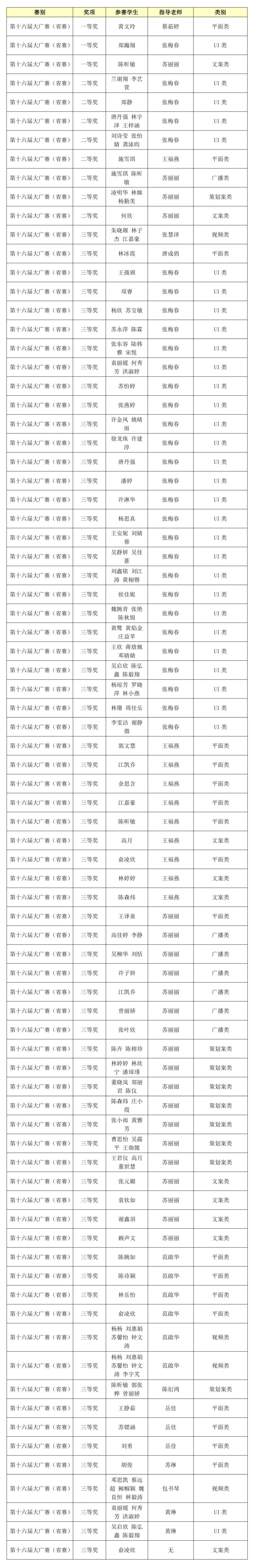 第十六届全国大学生广告艺术大赛福建赛区乐鱼官方网页版获奖名单