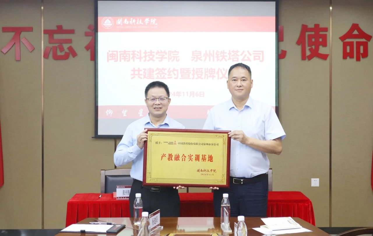 11月6日,我校与泉州铁塔公司举行产教融合实训基地签约授牌仪式。泉州铁塔公司总经理邱文杰、副总经理詹绍武,校领导周勇军、邱永渠出席签约授牌仪式。泉州铁塔公司、南安区域相关部门负责人,光电信息学院、有关职能部门负责人参加活动。