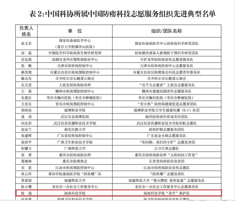 近日,中国防痨协会开展2024年中国防痨科技志愿服务总队队员推荐及先进典型推选宣传活动,我校生命科学与化学学院“青芒”救护队获评“中国防痨科技志愿服务组织先进典型”荣誉称号,2022级环境科学专业郑琳琳同学获评“中国防痨科技志愿服务者先进典型”荣誉称号。