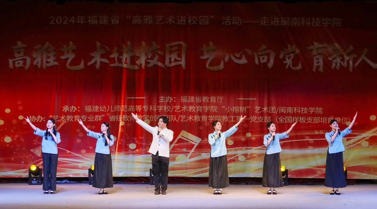 此次高雅艺术进校园活动,由福建省教育厅主办,福建幼儿师范高等专科学校艺术教育学院“小榕树”艺术团和我校共同承办。本次活动不仅仅是一场视听盛宴,更是一次文化传承与交流。广大师生通过近距离感受舞台艺术,体悟中华优秀传统文化的精神内涵,在艺术学习的过程中坚定文化自信、增强文化自觉。