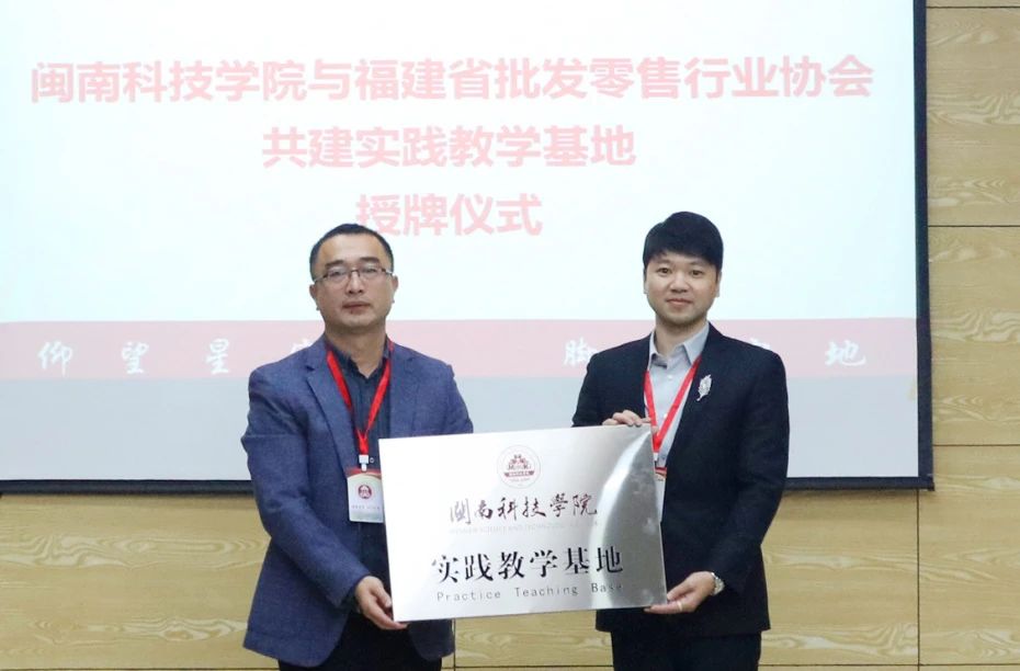 在签约仪式上,我校与福建省批发零售行业协会共建实践教学基地签约并授牌。