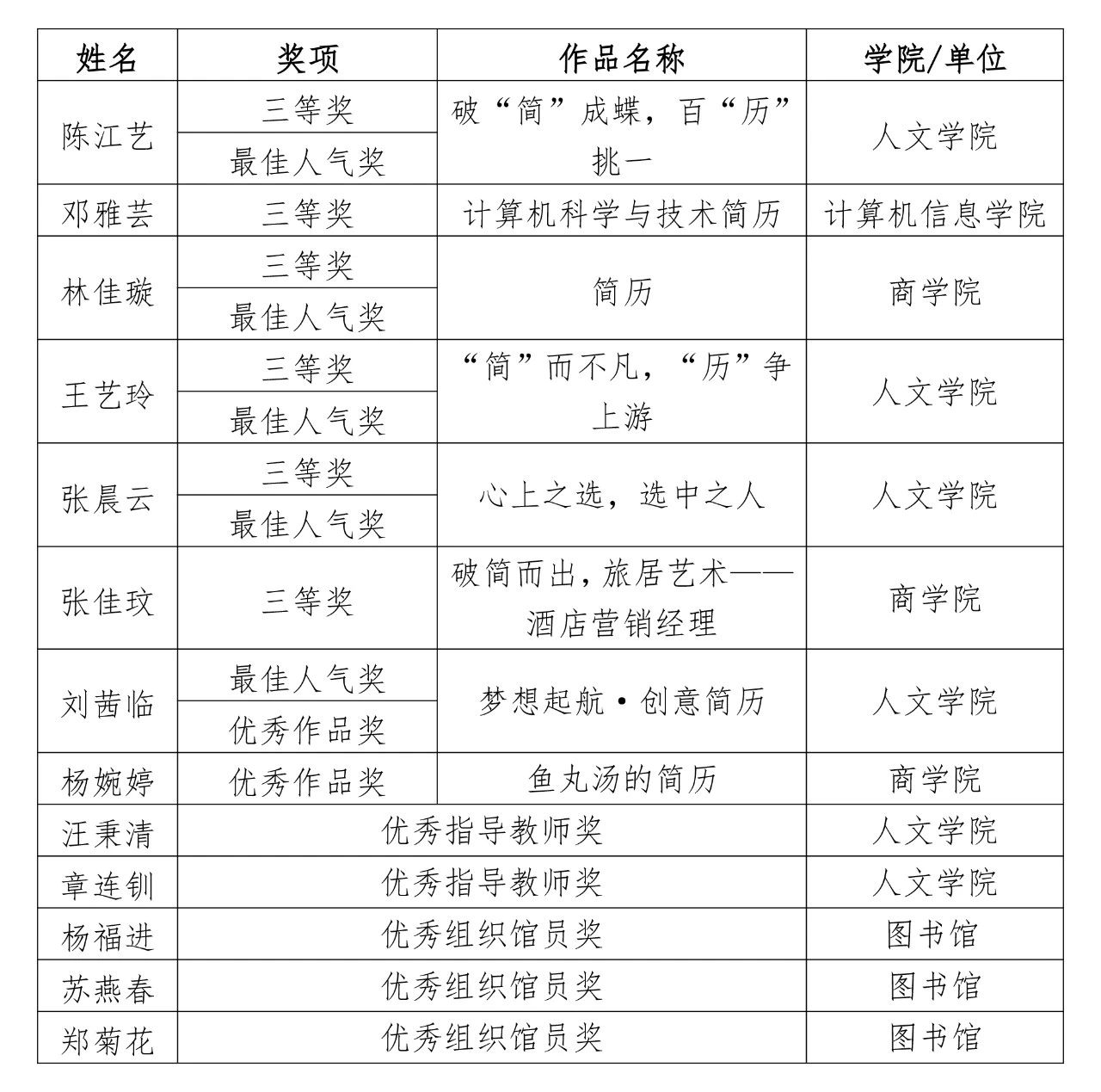 2024年泉州市就业简历创意设计大赛乐鱼官方网页版获奖名单