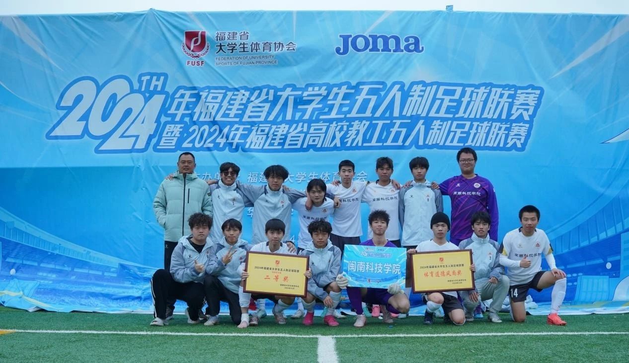 12月21日,2024年福建省大学生五人制足球联赛在泉州举行。我校五人制男足代表队参加本科校园男子组竞赛获二等奖的优异成绩,学校获评体育道德风尚奖。