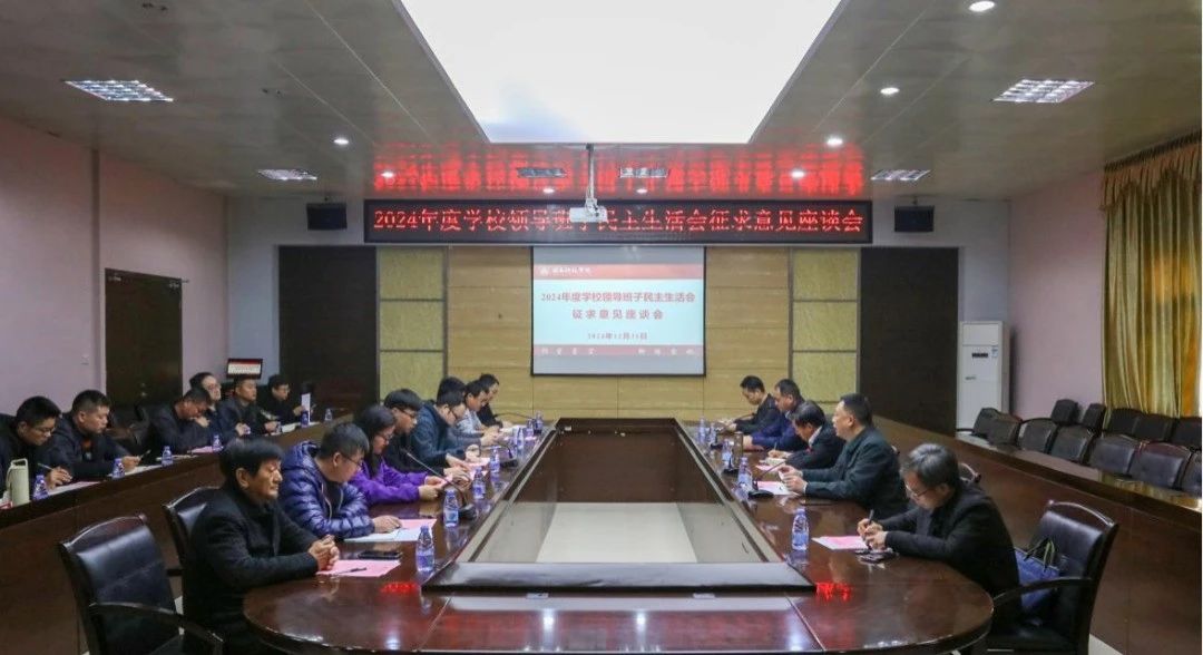 12月31日,校党委书记李旭主持召开2024年度学校领导班子民主生活会征求意见座谈会。校长袁自煌、常务副校长周勇军出席会议,党政办公室、组织部、统战部负责人,民主党派、党外知识分子代表,教职工、学生代表等参加会议。