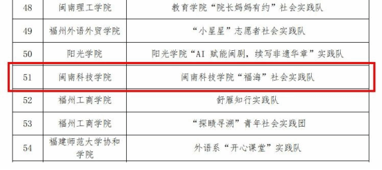 近日,中共福建省委教育工委公布2024—2025学年全省大学生寒假“追寻领袖足迹 体悟优秀传统文化”主题社会实践活动评选结果,由我校马克思主义学院、商学院联合组建的“福海”社会实践队获评“优秀实践团队”,校团委黄俊敏、商学院康梓棋两位教师获评“优秀实践个人”。