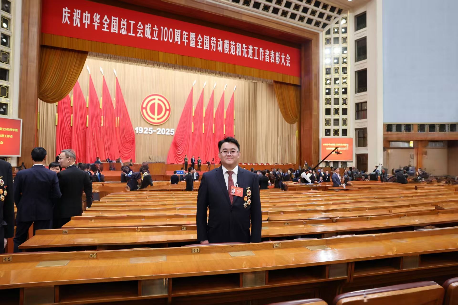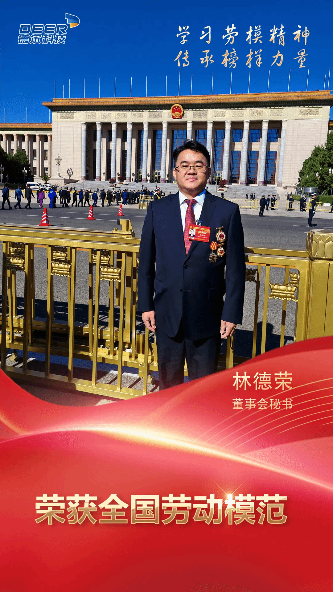 本次是第17次全国劳模表彰,也是党的二十大擘画新时代新征程蓝图后的首次全国性劳模盛会,意义特别重大。全国劳动模范是党中央、国务院授予在社会主义建设事业中做出重大贡献者的最高荣誉之一,每五年评选表彰一次,旨在弘扬劳模精神、劳动精神、工匠精神。人民大会堂也是普通劳动者接受表彰的最高殿堂,更是劳模荣誉和责任的象征,林德荣同志现场聆听了习近平总书记重要讲话,倍感振奋、深受鼓舞!