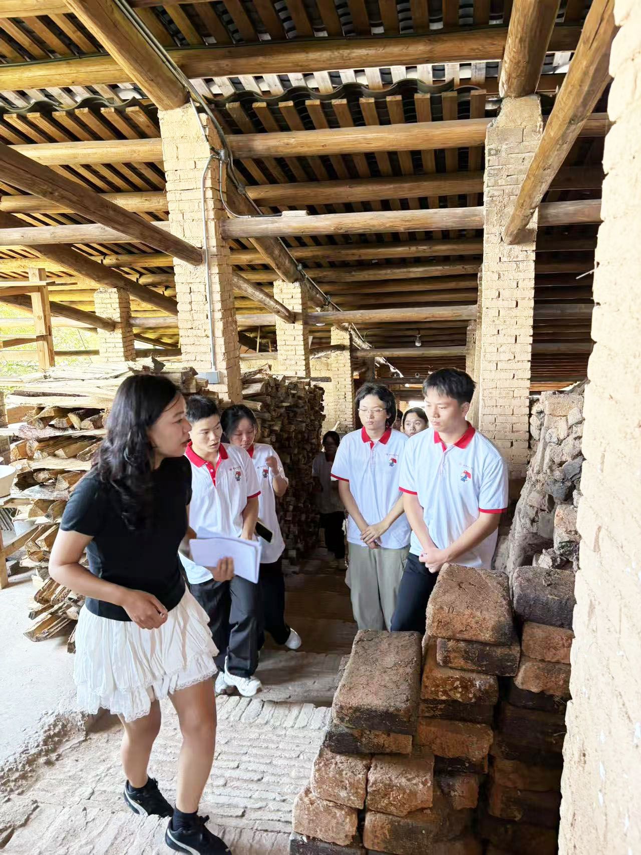 实践队首站来到了被誉为德化窑“活化石”的月记窑,这座始建于明代的40余米龙窑依山盘踞,沿30度山坡蜿蜒而上,历经四百余年风雨仍坚持古法柴烧,承载着历史与文化的古老龙窑,见证了德化陶瓷的辉煌与传承。