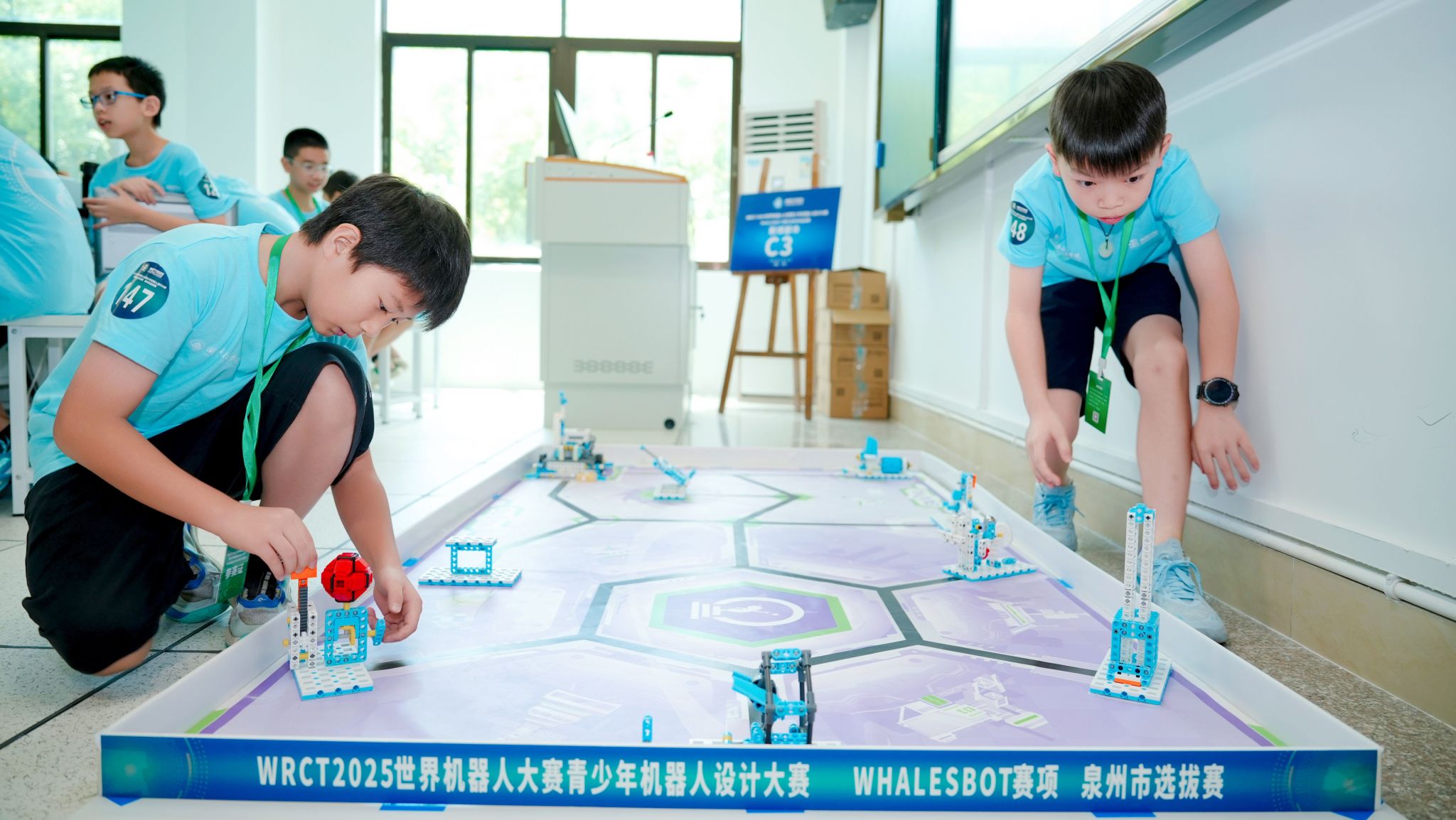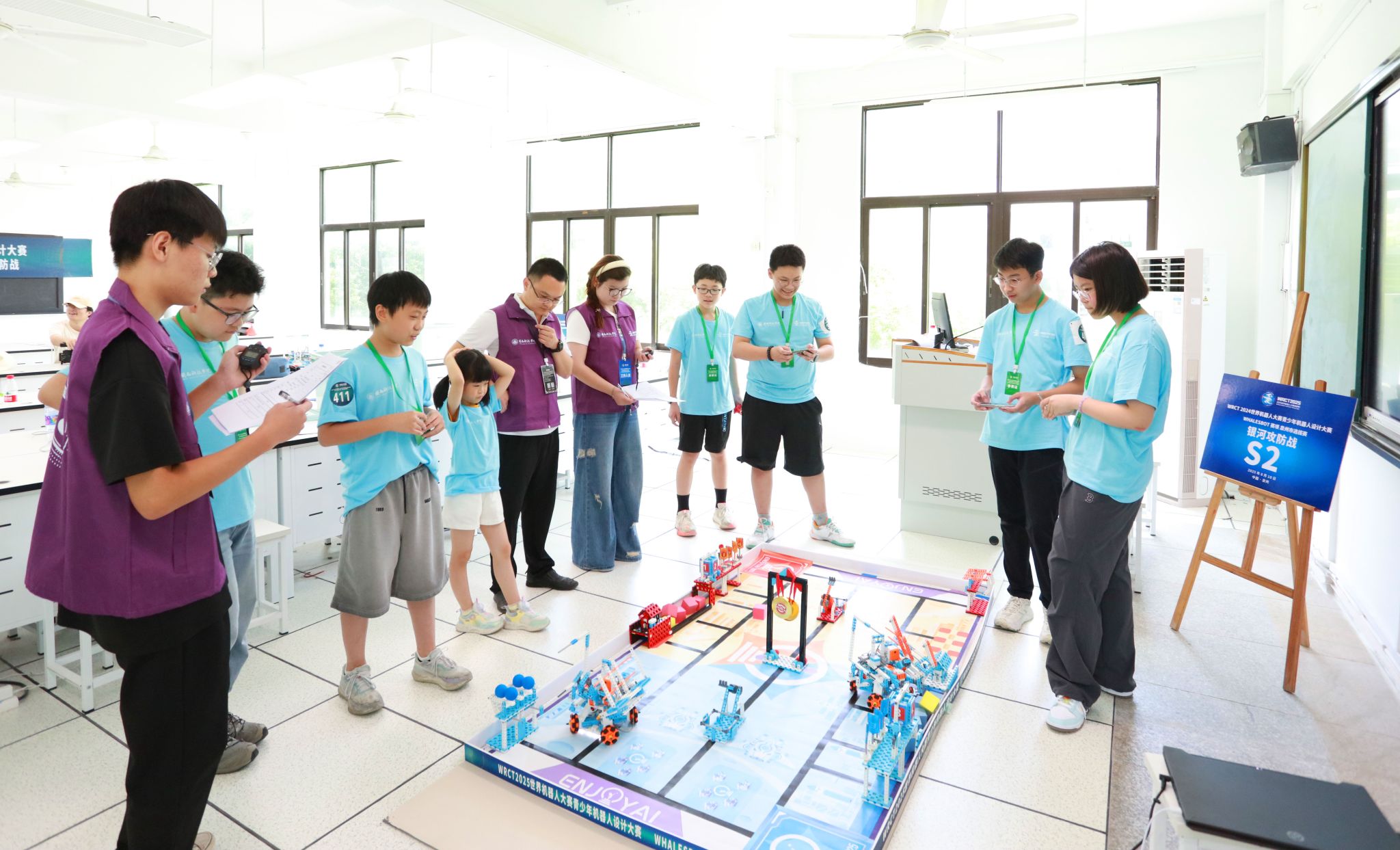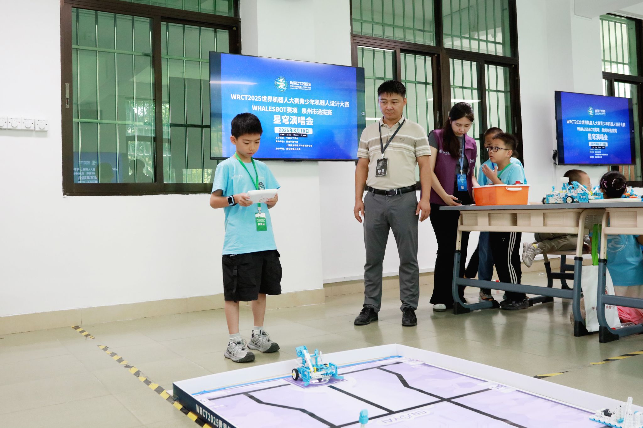 8月10日,WRCT2025世界机器人大赛青少年机器人设计大赛WHALESBOT赛项泉州市选拔赛在我校精彩开赛。选拔赛由中国电子学会主办,乐鱼官方网页版、上海鲸鱼机器人科技有限公司共同承办,南安市第三小学协办。吸引了来自省内470余支队伍同台竞技,展开了一场智慧与技术的精彩碰撞。