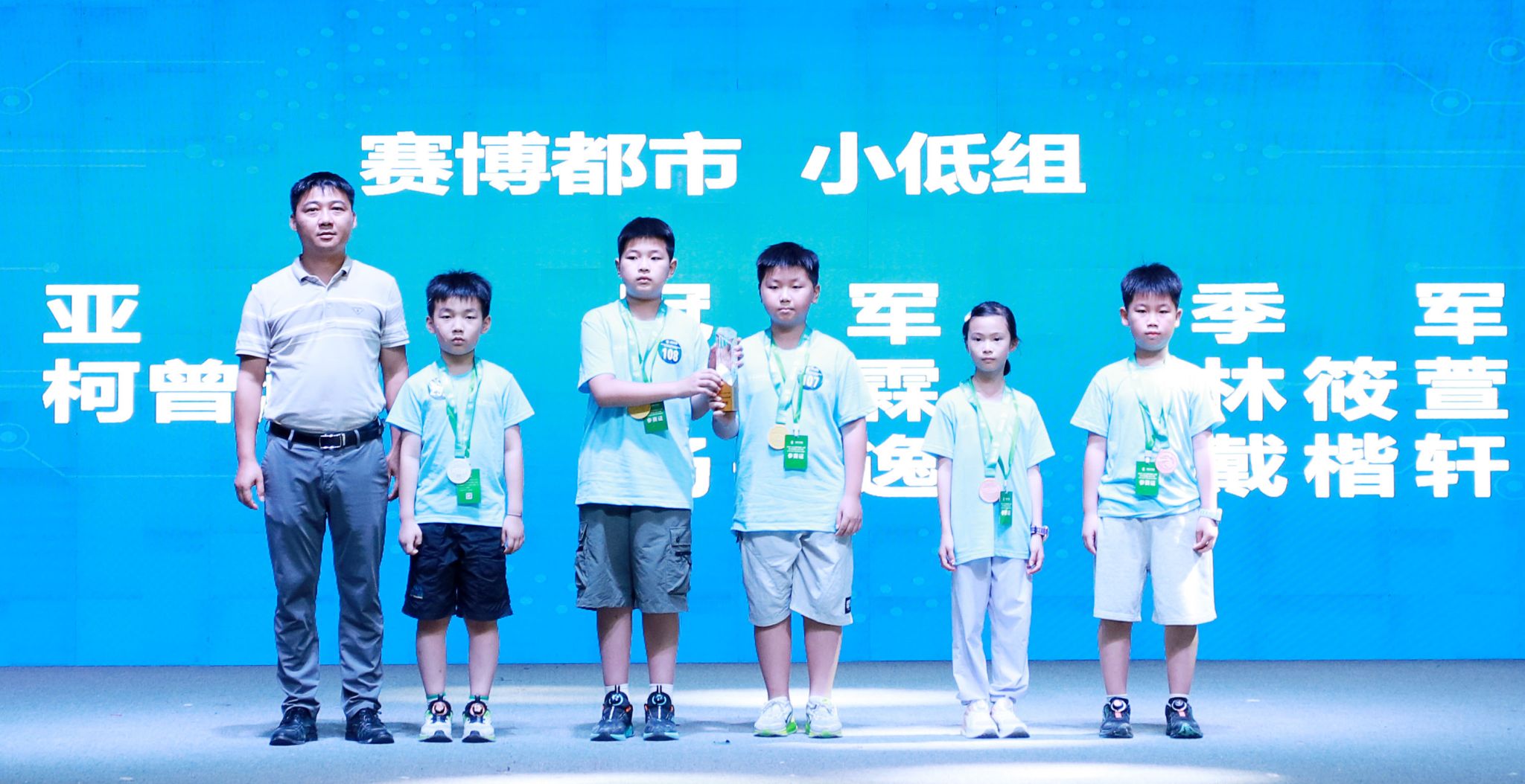 与会领导为获奖选手们颁发奖杯与奖牌