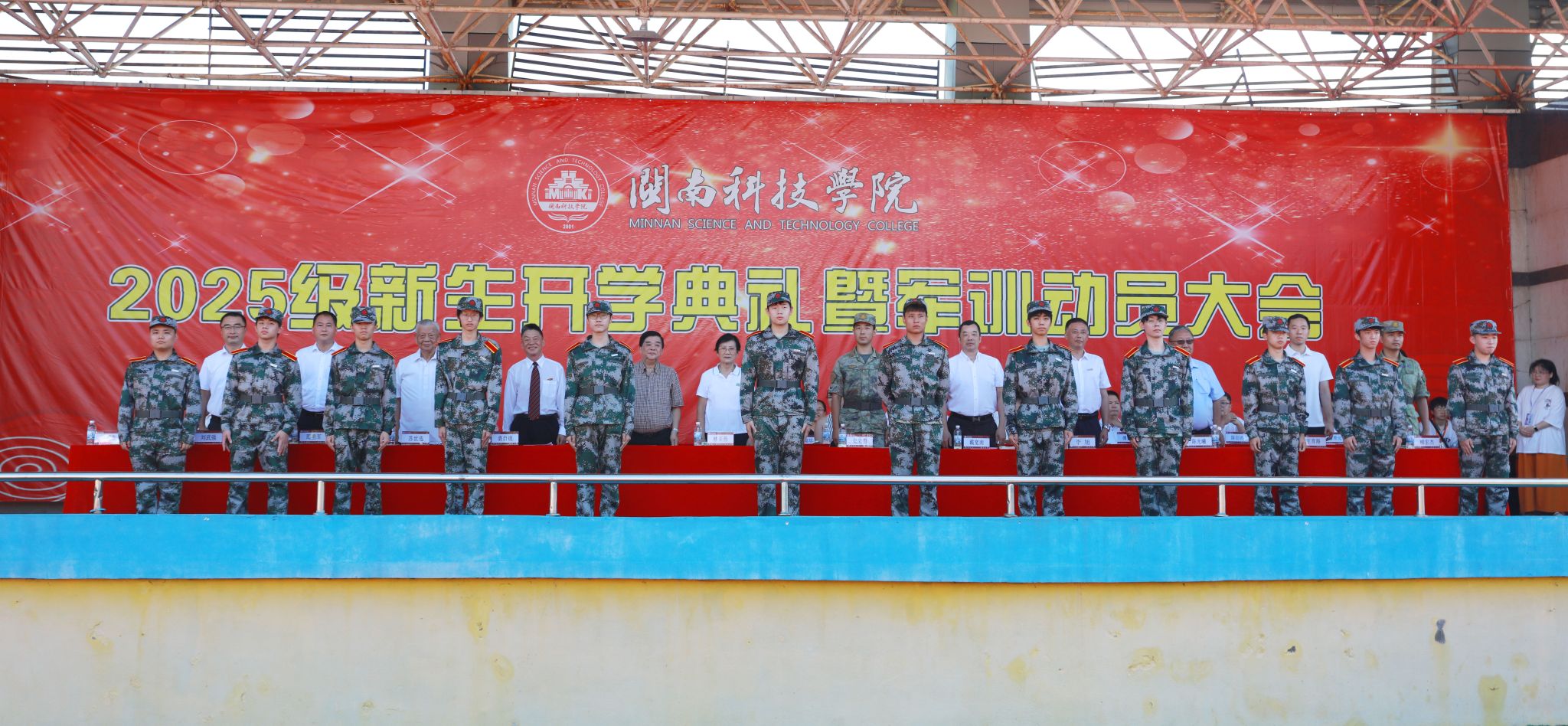 9月21日上午,我校2025级新生开学典礼暨军训动员大会在康美校区隆重举行。军训承训部队史立哲少校、柳宏杰上尉;学校董事长、法人代表林亚燕,执行董事长林国端,副董事长戴宽南,原名誉董事长苏世选,原副董事长陈光曦等;校领导李旭、袁自煌、周勇军、林树生,校长助理王育海、刘武强,行政职能有关部门负责人,各二级学院党政主要负责人出席典礼,教师代表、新生辅导员、老生代表、2025级全体新生参加典礼。典礼由校党委副书记林树生主持。