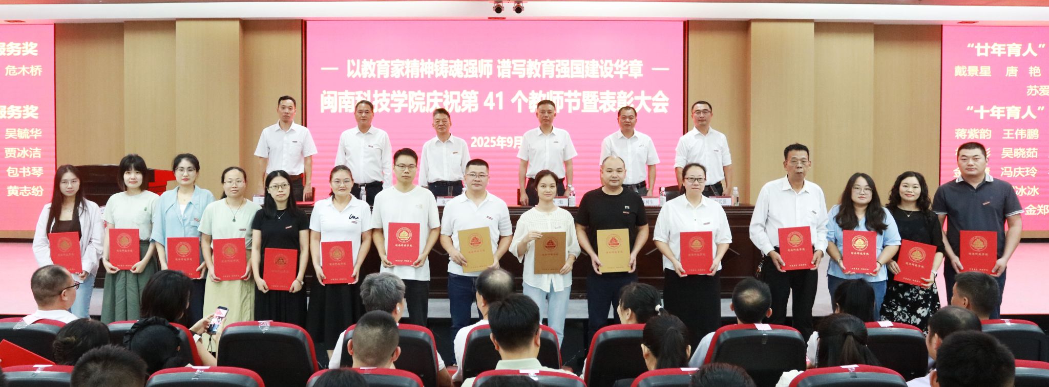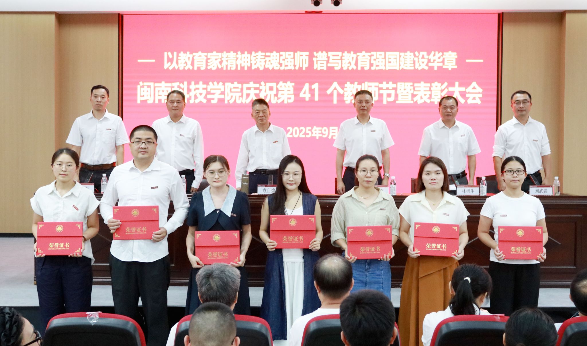 校党委书记李旭致辞,代表校党委和行政向辛勤耕耘在教育教学一线的全体教职员工致以节日的问候和崇高敬意!向受到表彰的先进集体和个人表示热烈的祝贺!他强调,在教育强国、教育强省建设的新征程中,广大教师要深入学习领会习近平总书记的重要回信精神,牢记嘱托、坚守初心,坚定信心、追求卓越,心怀大爱、乐教爱生,以昂扬奋进的精神状态不断谱写闽科发展新篇章。一要牢记嘱托、坚守初心。坚持以教育家精神为引领,坚守为党育人、为国育才初心使命,坚持不懈用习近平新时代中国特色社会主义思想铸魂育人,在不同岗位上奏响“立德树人”大合唱,培养一批又一批德智体美劳全面发展的社会主义建设者和接班人。二要坚定信心、追求卓越。以落实教育强省建设规划纲要,谋划学校事业发展“十五五”规划,迎接教育部本科教学工作合格评估为契机,牢记习近平总书记“福建没有理由不把教育办好”的殷切嘱托,坚持“仰望星空、脚踏实地”,把“论文写在田野大地上”,以教育之力厚植人民幸福之本,以教育之强夯实国家富强之基,为全面推进中华民族伟大复兴贡献闽科价值、闽科力量。三要心怀大爱,乐教爱生。要用真心、真情、真诚关爱每一位学生,严爱相济、润己泽人,做学生信赖的“良师益友”。牢记习近平总书记对教师队伍的殷切嘱托,既要有育人的知识和本领,更要有乐教的情怀和担当,以大爱践行学校“学生成才、家长放心、社会满意”的办学理念。