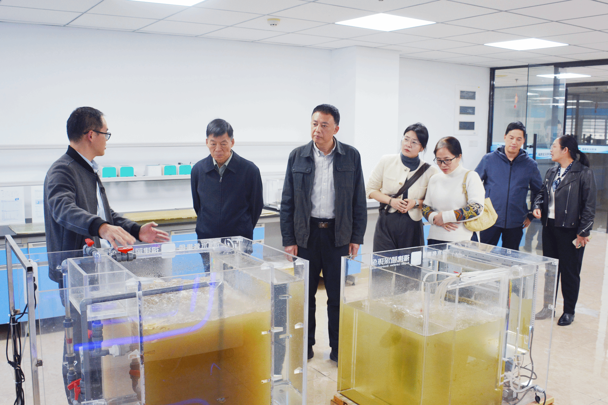 校领导一行参观了蓝深环保研究院、海丝数智生态中心、企业展厅等,深入了解企业概况、科研成果转化、“蓝深大脑”智慧运营平台建设,以及人才需求和未来发展规划等。