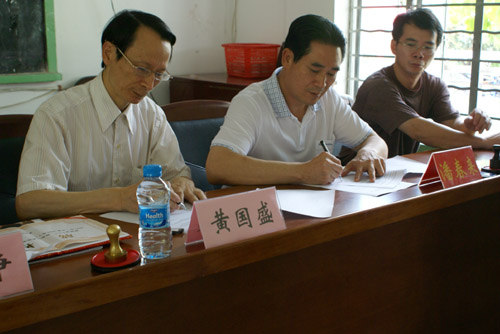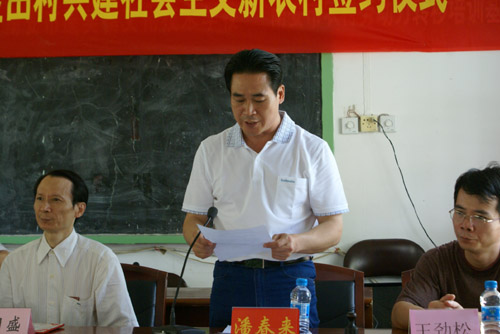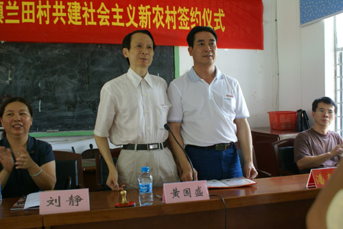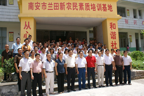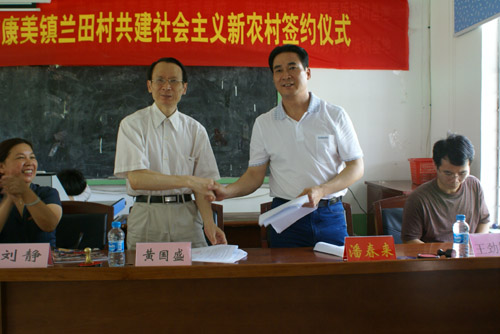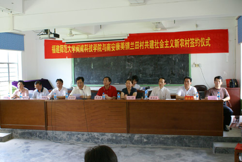 我院与南安市康美镇兰田村共建社会主义新农村签约仪式7月4日在南安市新农村素质培训学校隆重举行。参加此次仪式的有南安市人大常委会黄永俊主任,南安市吴顺情副市长,康美镇党委书记王强乐、镇长吴长流,兰田村党支部潘春来书记及全体党员,我院黄国盛院长、刘静书记、赖忠泉副书记、团委林树生书记及部分师生代表。