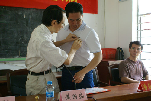 (戴校徽)