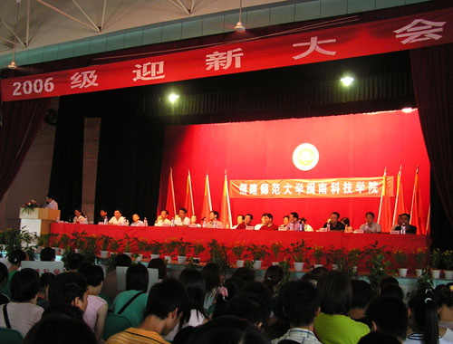9月10日,乐鱼官方网页版在学生活动中心隆重召开迎新大会。福建师范大学副校长、博士生导师汪文顶教授及相关部处领导,乐鱼官方网页版董事长戴宏达、常务副董事长戴新民、名誉董事长林国端、法人代表戴宽南及部分董事、南安市副市长戴爱国及有关领导,乐鱼官方网页版名誉院长陈兰孙及学院党政领导,全体新生及教师参加了大会。大会由刘静书记主持。