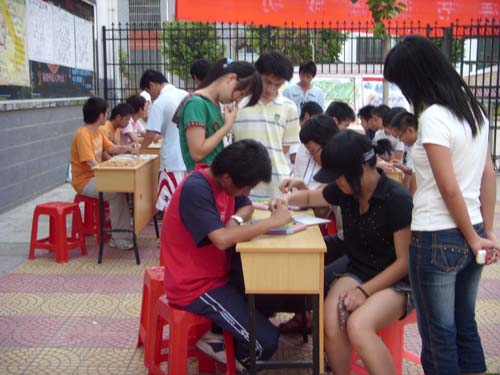 5月3日下午,本次“五一”系列活动的最后一个项目“以棋会友”比赛在学生社区举行。本次象棋比赛采取5局3胜制,有的同学棋逢对手,胜负难分,比赛直到最后一局才分出胜负;有的同学实力相差悬殊,比赛也就早早地失去悬念,3局很快就分出了胜负。本次象棋比赛为那些爱好下象棋的同学提供了一个很好的机会,不仅可以展现自己棋艺,而且可以通过比赛结交一些同样喜欢下象棋的棋友,一举两得。