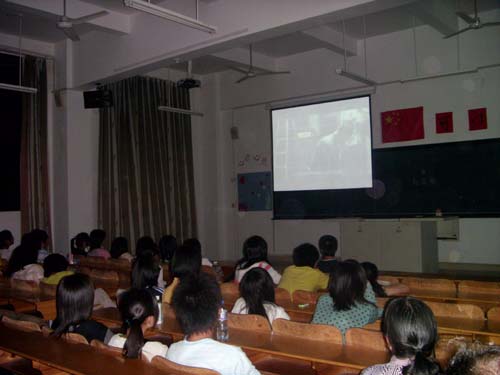 为激发广大学生的爱国主义情感,培养学生的爱国主义精神,巩固德育教育阵地,将荣辱观教育进一步推进,5月1日晚,院影音社在教学楼C401举行爱国主义影片展播,吸引了许多学生到场观看。看到革命先辈在艰苦的革命环境下吃苦耐劳,顽强拼搏,为争取民族独立和国家解放而抛头颅、洒热血,学生们的情感也都不由自主地受到了深深地感染。07应用化学的黄颖慧说:“革命先辈的爱国之情深深地感染和激励着我们每一位青年人,在今后的学习中我们将更加努力学习,发扬革命先辈不怕苦、不怕累,吃苦耐劳的精神。”