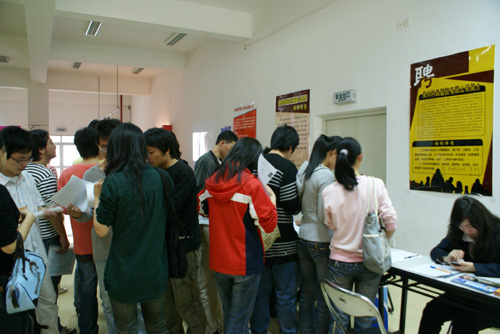 4月19日上午,我院2008届毕业生供需见面会在福建师范大学旗山校区举行。这是专门针对我院2008届毕业生开的一次专场招聘,吸引了来自福州、厦门、泉州等地的企业参加。院领导黄国盛、刘静、何瑞鑫、陈振祯到场指导各项工作。