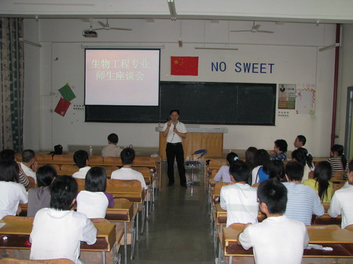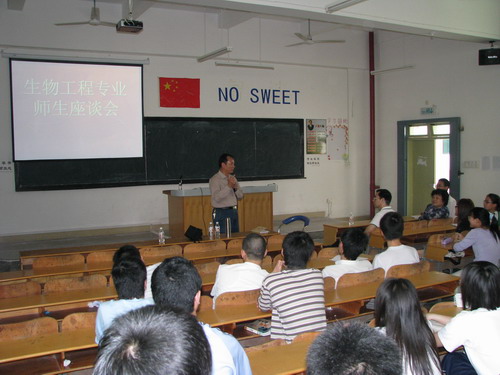 讲座结束后,刘书记和陈副院长与师生进行了亲切座谈。座谈会上,刘书记和陈副院长介绍了上一届学生的考研和就业情况,充分肯定了我院生物工程专业学生各方面的素质,并就同学们学习、考研、就业等方面的困惑进行了认真的解答,提出了宝贵建议。最后领导们对同学们提出了殷切的期望,鼓励同学们要以新精神、新状态、新面貌,优化知识结构,加强能力的培养,不断提高自己各方面的素质。同学们纷纷表示深受启发,收获颇多,对今后学习、努力的方向更加明确。