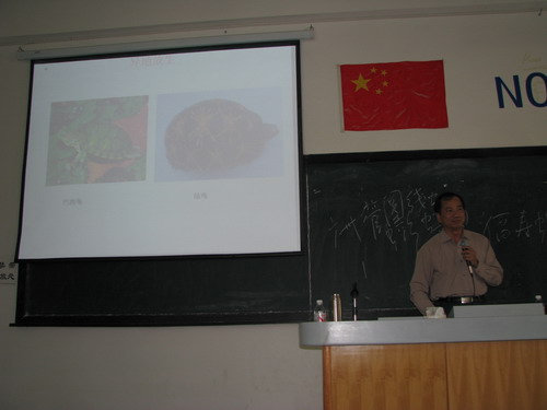 下午两点整,讲座准时开始。陈教授结合生活实例,图文并茂,就外来物种的概念和特点、外来物种的种类、入侵途径、公共场所造成的危害和防护措施等作了详细介绍。讲座中,老师和同学们结合自己的专业知识,就自己关注的问题,向陈教授进行提问,陈教授当场作了精彩的解答,引来了同学们阵阵热烈的掌声。