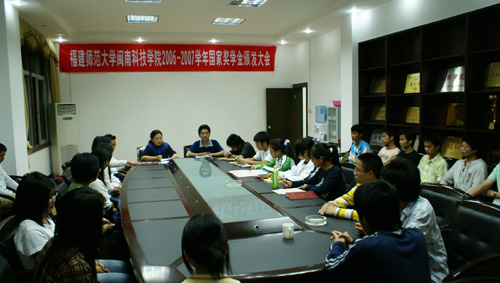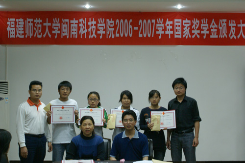 会议首先是由院党委副书记陈振祯宣读《福建师范大学乐鱼官方网页版关于林晓玲等五名获国家奖学金同学的表彰决定》,随后院党委常务副书记刘静分别为获奖者颁发荣誉证书和奖金,并与他们合影留念。此次我院共有五名学生获得国家奖学金,每人奖励8000元,分别是04中文林晓玲、05国贸叶晓丽、05生工魏芳、06广告曾荣根、06应化王雅萍。几名获奖者领奖后都发表了获奖感言,感谢国家的奖励政策、感谢学院领导对他们的关怀、感谢老师对他们的教育、感谢父母对他们的培养,他们一致表示将再接再厉,刻苦学习,争取取得更好成绩。